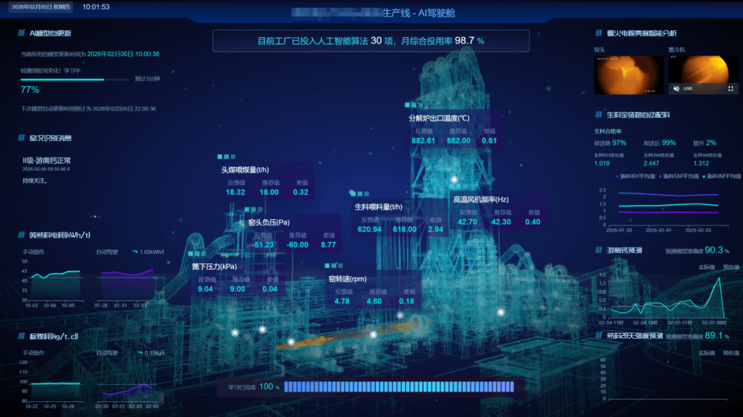 建材行业绿色智造工业互联网平台采用云、边、端相结合的部署方式,云端提供数据中台、业务中台、大数据处理、模型和算法库等能力支持,边、端以SAAS化方式部署即时信息处理和控制模块,以数据透明、生产可控、信息可溯、设备互联、管理智能为特征,打造建材行业绿色智造全链式平台服务模式,提升资源利用率、优化能耗管理,赋能水泥企业节能降碳、质量优化和智慧生产。构建基于生产全流程知识库数据集的工艺专家智能体、基于生产数据分析数据集的智能问数智能体、基于生产经营决策数据集的经营分析决策智能体等垂直领域工业模型,实现从数据融合到智能决策的价值升华,为质量追溯、能效优化等核心场景提供精准支撑。