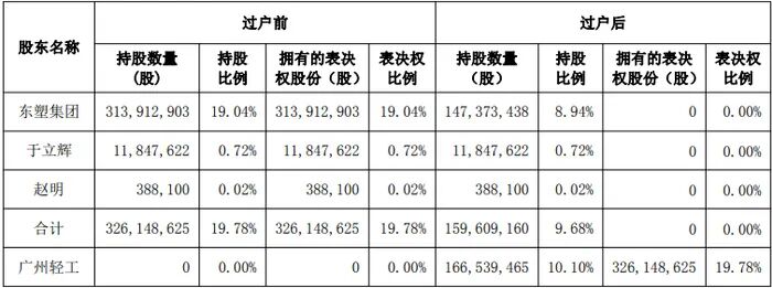 2025年12月,广州轻工与东塑一方签署相关协议;今年2月,协议转让已完成过户登记。